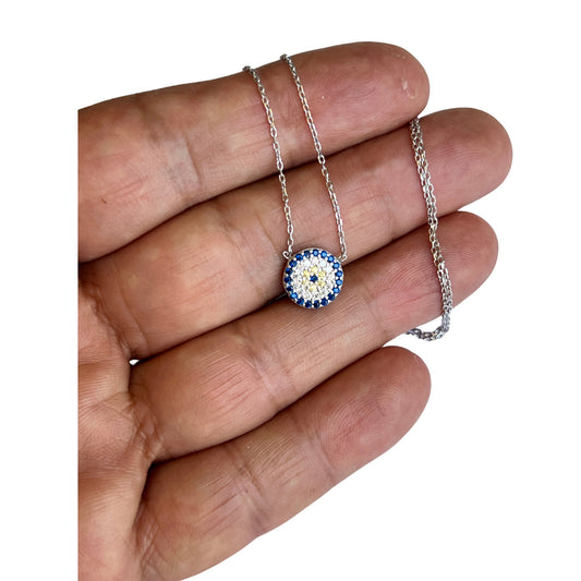 Evil Eye Necklace, Evil Eye Protection 925 Sterling Silver, Gold plated, SAPPHIRE and CZ stones Necklace